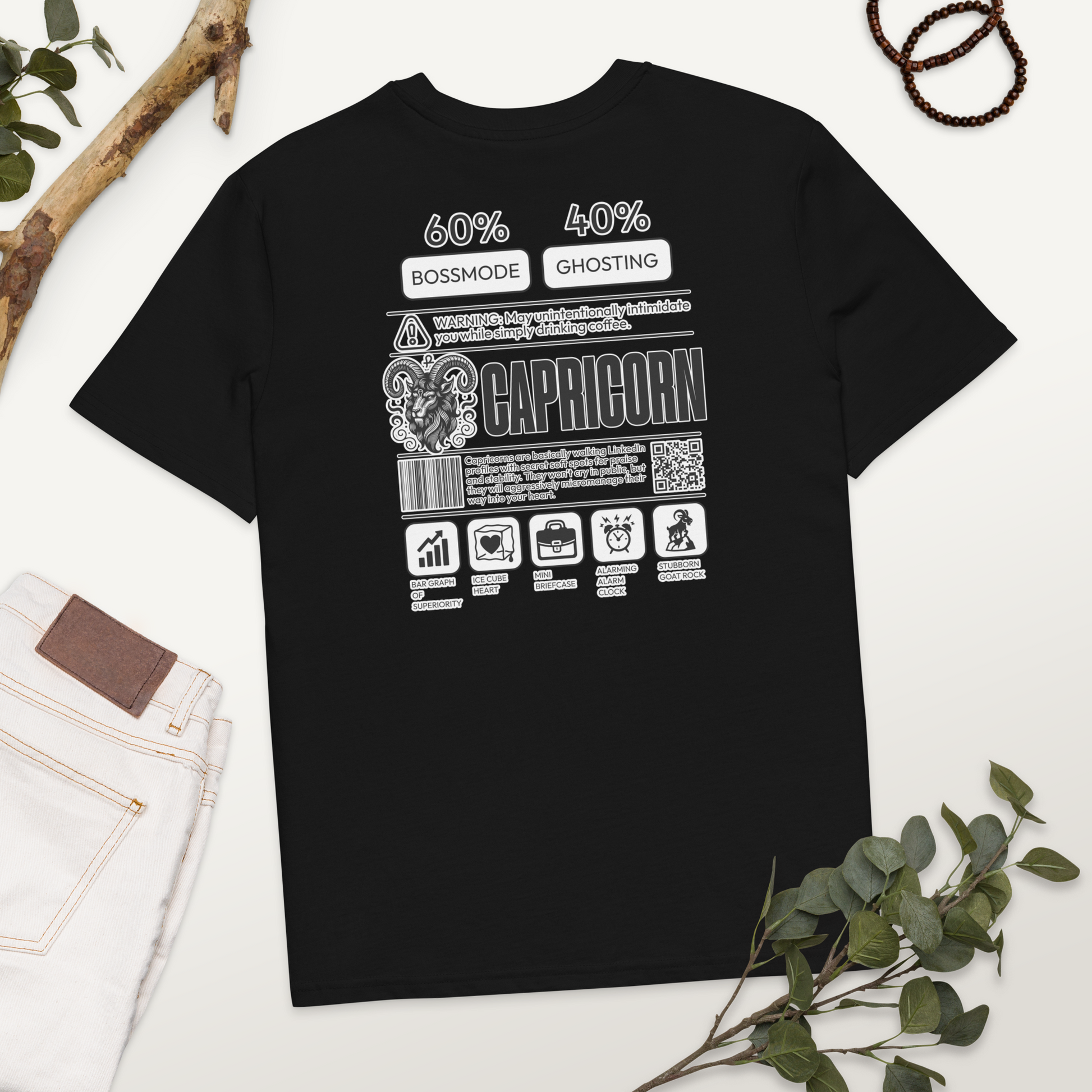Graphs, clocks, and goats on rocks—Capricorn doesn’t climb the ladder, they build it. With icons as sharp as their 3AM alarm, this shirt screams “I have a spreadsheet for this.” QR code is built to function just like them: flawlessly.