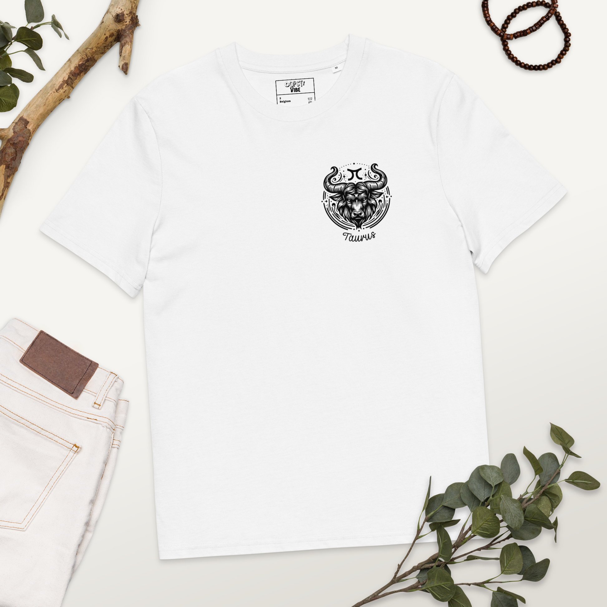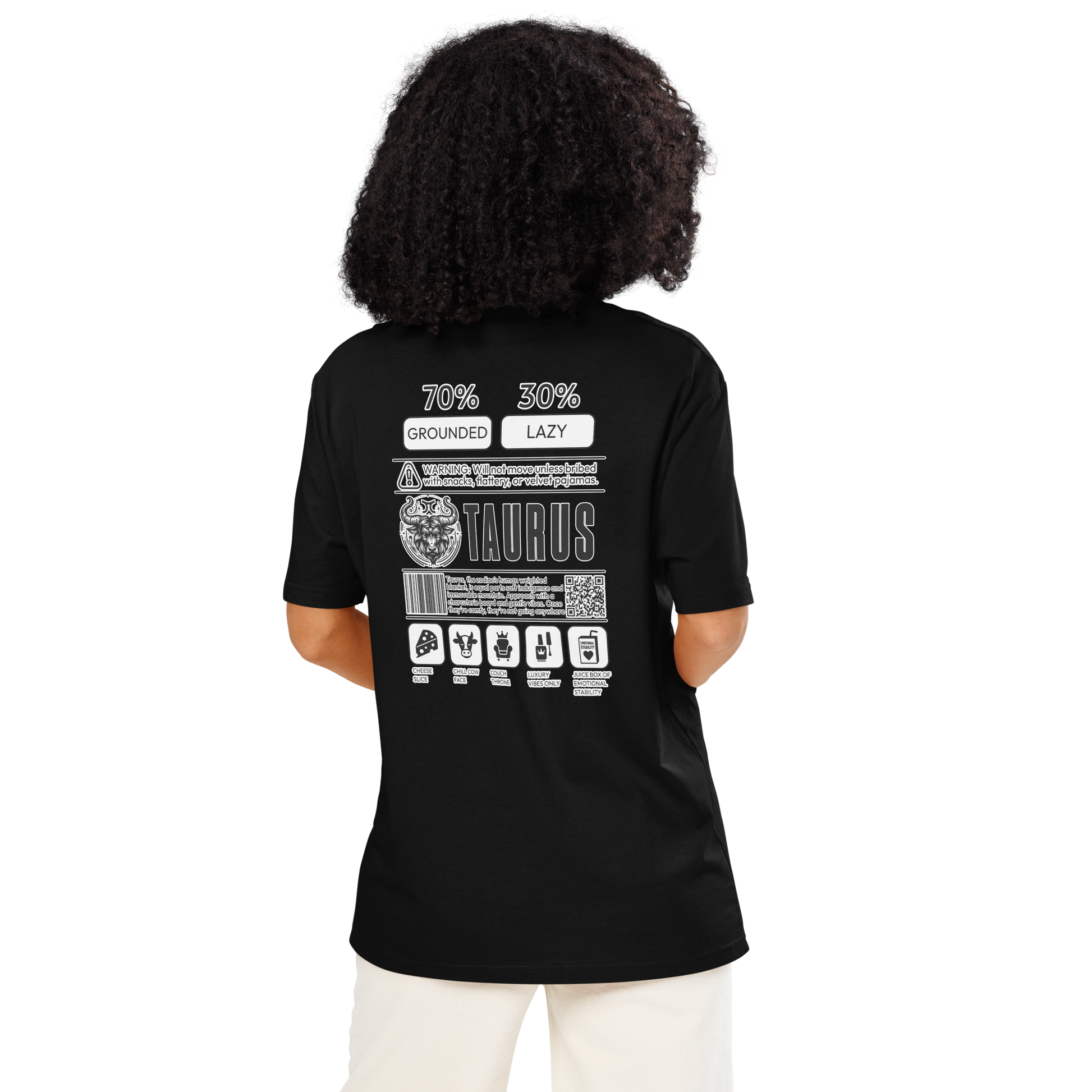 Taurus came to lounge, snack, and radiate luxury. With icons like a chill cow face and a couch throne, this shirt says, “Yes, I’m stubborn—but in cashmere.” Barcode + QR? Functioning and fabulous.