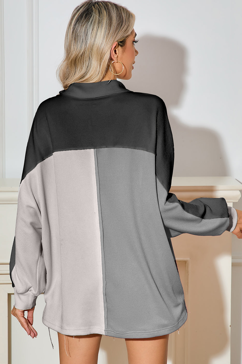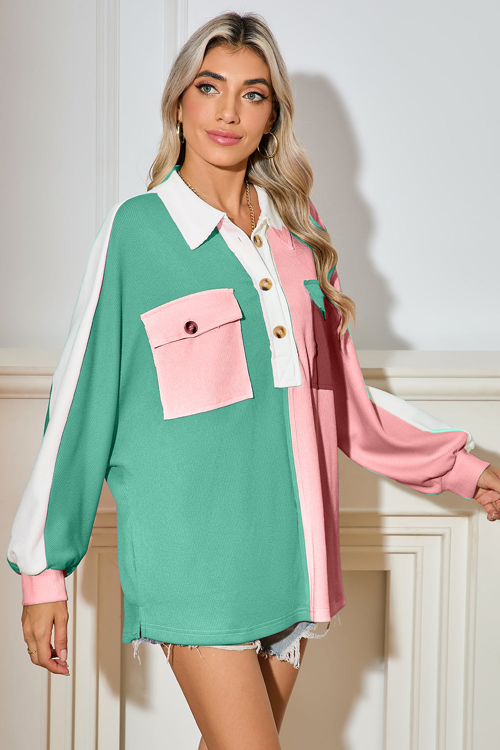 Experience the perfect blend of comfort and style with our Colorblock Patchwork Ribbed Oversized Henley Sweatshirt. The bold color palette, unique patchwork design, and Henley neckline with buttons make a statement, while the cozy ribbed texture and oversized fit ensure a relaxed feel. Elevate your wardrobe with a touch of creativity and vibrant color!