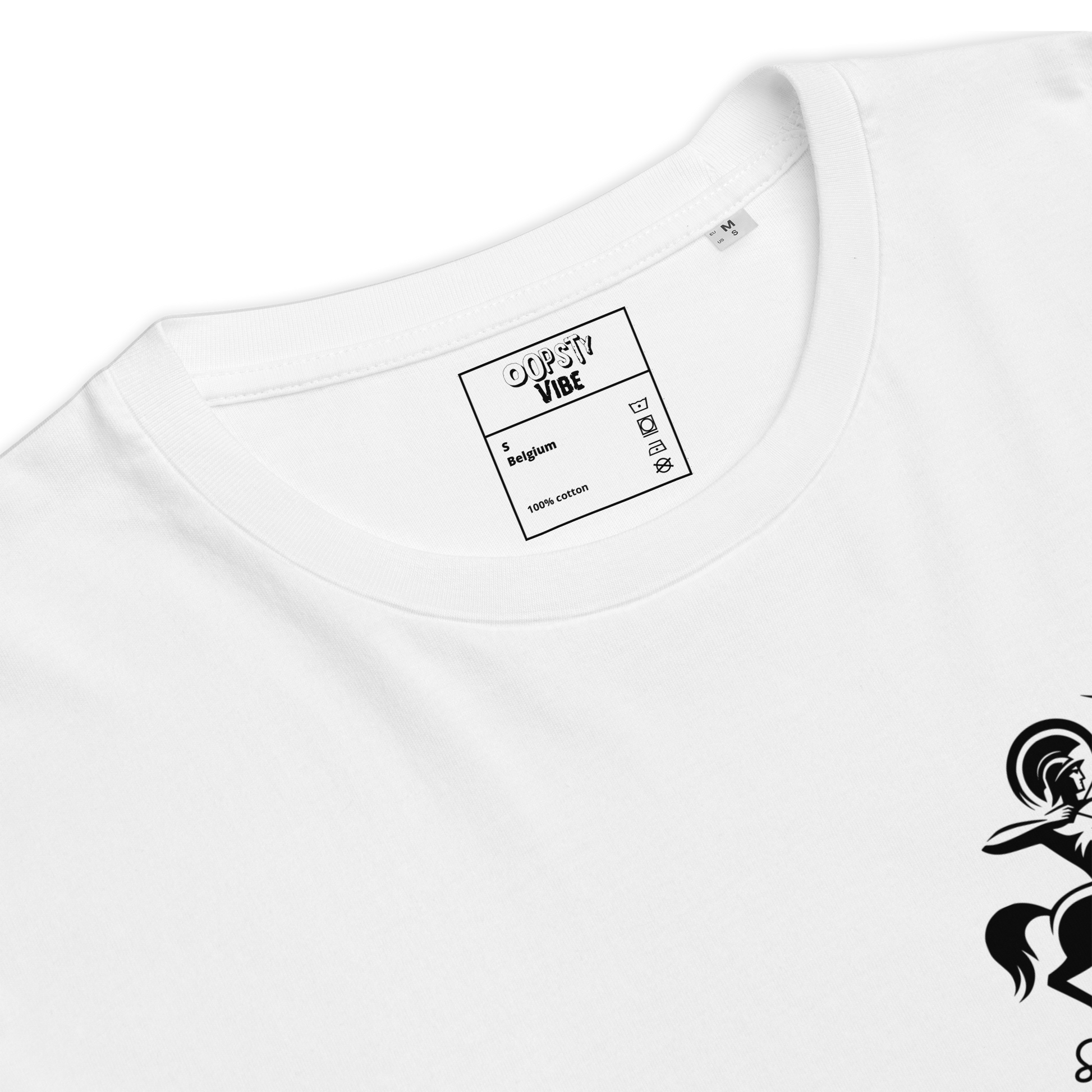 Philosophy books and flaming globes? Sagittarius is heading out the door—with or without you. This tee is blunt, fiery, and a little chaotic. QR code works worldwide, of course.